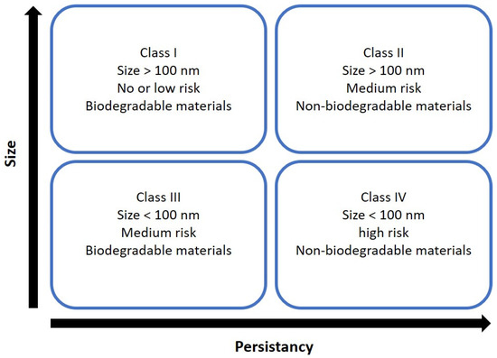 The nanotoxicological classification system (NCS) depends on size and persistency in the body. Image adapted from Keck and Müller [46].