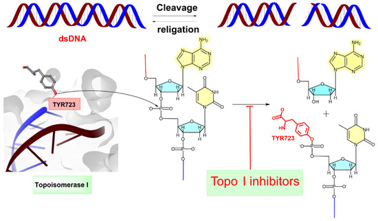 - Pommier, Y. DNA topoisomerase I inhibitors: Chemistry, biology, and interfacial inhibition. Chem. Rev. 2009, 109, 2894–2902. [Google Scholar] [CrossRef]
