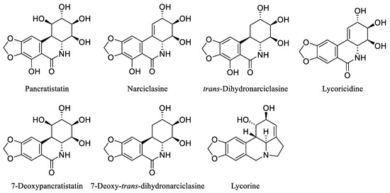 - Pettit, G.R.; Gaddamidi, V.; Cragg, G.M.; Herald, D.L.; Sagawa, Y. Isolation and structure of pancratistatin. J. Chem. Soc. Chem. Commun. 1984, 1693–1694. [Google Scholar] [CrossRef]