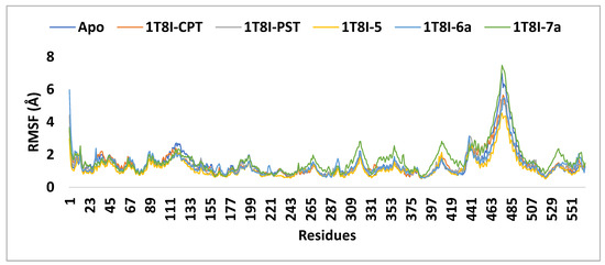 - Chillemi, G.; Fiorani, P.; Benedetti, P.; Desideri, A. Protein concerted motions in the DNA-human topoisomerase I complex. Nucleic Acids Res. 2003, 31, 1525–1535. [Google Scholar] [CrossRef]