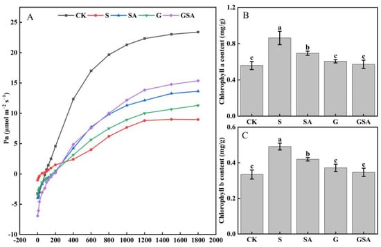 2.2. Light Response Curve, Photosynthetic Parameters, and Chlorophyll Content