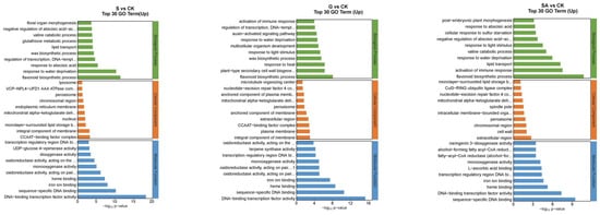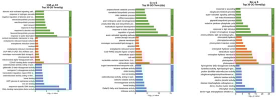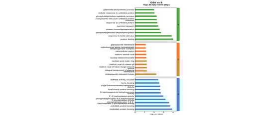 2.6.2. Gene Ontology (GO) Function Analysis of Differentially Expressed Genes among Different Treatments