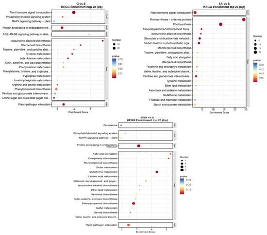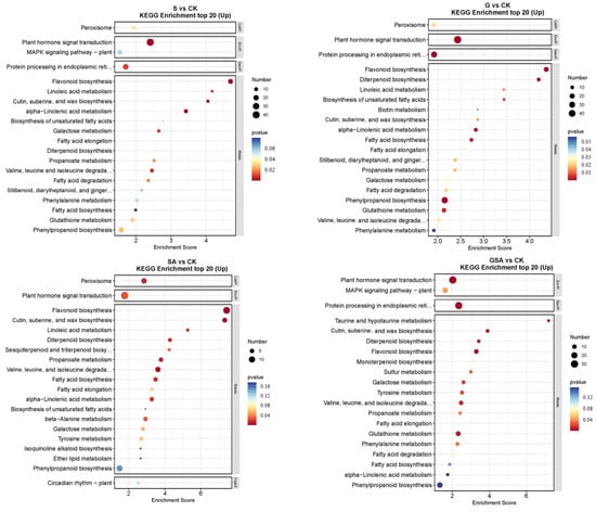2.6.3. Kyoto Encyclopedia of Genes and Genomes (KEGG) Analysis of DEGs among Different Treatments