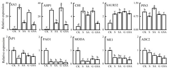 3.6. Effect of Graft, Exogenous SA, and Their Interaction on Transcriptome of Tomato under Salt Stress