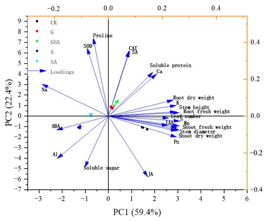 | Treatment | Stem Length/cm | Stem Diameter/mm | Shoot Fresh Weight/g | Root Fresh Weight/g | Shoot Dry Weight/g | Root Dry Weight/g | Leaf Number |