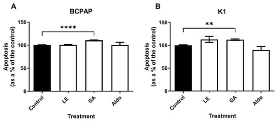 APA StyleManso, J., Censi, S., Pedron, M. C., Bertazza, L., Mondin, A., Ruggeri, E., Barollo, S., Sabbadin, C., Merante Boschin, I., Armanini, D., & Mian, C. (2024). Anti-Proliferative and Anti-Migratory Activity of Licorice Extract and Glycyrrhetinic Acid on Papillary Thyroid Cancer Cell Cultures. International Journal of Molecular Sciences, 25(19), 10800. https://doi.org/10.3390/ijms251910800