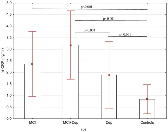 - Gorska-Ciebiada, M.; Saryusz-Wolska, M.; Borkowska, A.; Ciebiada, M.; Loba, J. Serum levels of inflammatory markers in depressed elderly patients with diabetes and mild cognitive impairment. PLoS ONE 2015, 10, e0120433. [Google Scholar] [CrossRef]