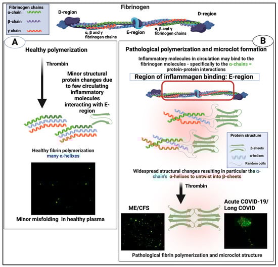Normal clots are far better studied, and their diameter, for instance, depends on the fibrinogen concentration, consistent with general chemical kinetics. However, what the exact structures are, especially for the fibrinaloid ones, and what eventually stops them increasing in both length and diameter indefinitely, is not yet known. The ability of normal fibrinogen [227] and other proteins [228] to convert into a β-sheet-rich form is probably highly relevant. These observations also depend, of course, on a variety of factors such as the degree of hydration; initial fibrinogen [229] and thrombin [230] concentrations; levels of small molecules [194,231], of metal, and other ions [232,233,234,235]; and so on. However, the point of this paragraph is that these are clearly very much larger numbers for the fibre diameters in fibrinaloid microclots than are those seen in classical amyloidoses.
