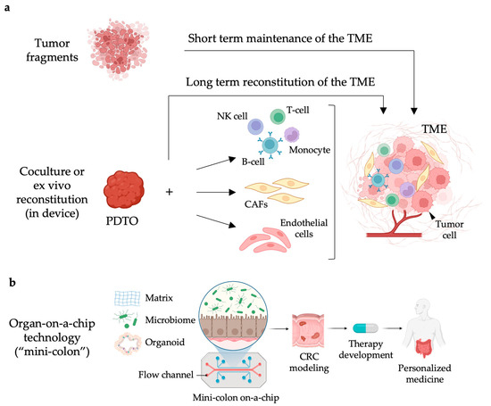 - Lorenzo-Martín, L.F.; Broguiere, N.; Langer, J.; Tillard, L.; Nikolaev, M.; Coukos, G.; Homicsko, K.; Lutolf, M.P. Patient-Derived Mini-Colons Enable Long-Term Modeling of Tumor–Microenvironment Complexity. Nat. Biotechnol. 2024; Online ahead of print. [Google Scholar]