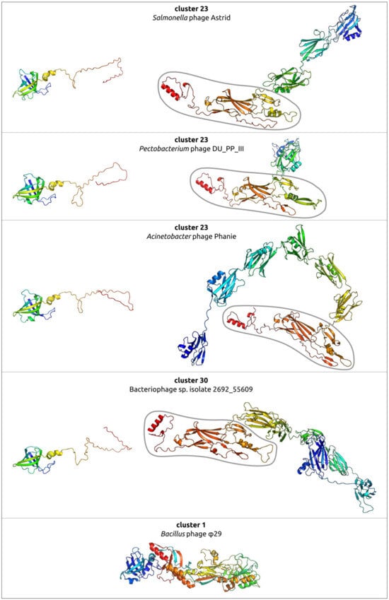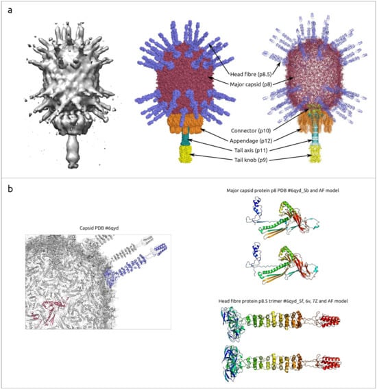 - Evseev, P.; Gutnik, D.; Shneider, M.; Miroshnikov, K. Use of an Integrated Approach Involving AlphaFold Predictions for the Evolutionary Taxonomy of Duplodnaviria Viruses. Biomolecules 2023, 13, 110. [Google Scholar] [CrossRef]