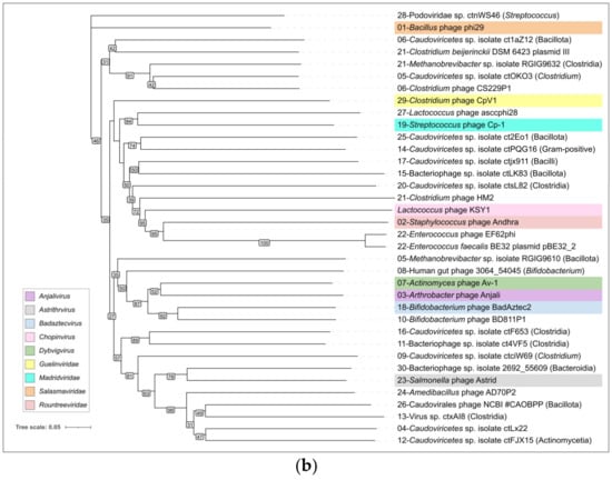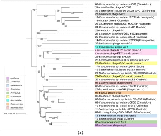 - Meier-Kolthoff, J.P.; Göker, M. VICTOR: Genome-Based Phylogeny and Classification of Prokaryotic Viruses. Bioinformatics 2017, 33, 3396–3404. [Google Scholar] [CrossRef]