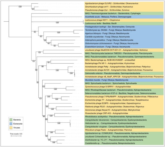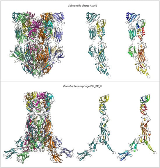 - Evseev, P.; Shneider, M.; Miroshnikov, K. Evolution of Phage Tail Sheath Protein. Viruses 2022, 14, 1148. [Google Scholar] [CrossRef]