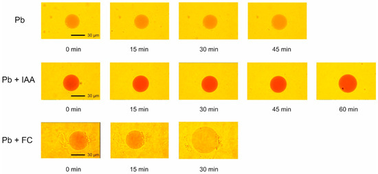 The photographs of the vacuoles incubated in the control medium with Pb and in the presence of IAA or FC combined with Pb.