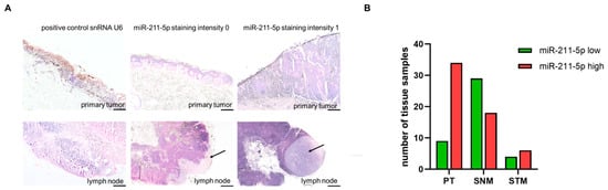 2.3. High miR-211-5p Expression in Sentinel Lymph Node Metastasis Is Associated with Worse Patient Outcome