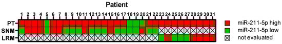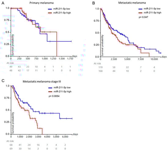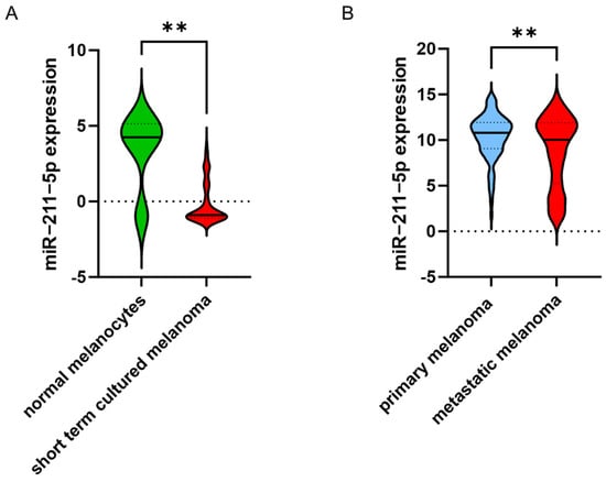 2.2. miR-211-5p Is More Frequently Highly Expressed in Primary Melanomas