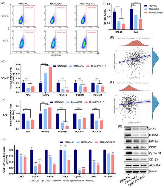 2.8. The Mechanistic Role of ADM and POLR1D in OSCC Cells