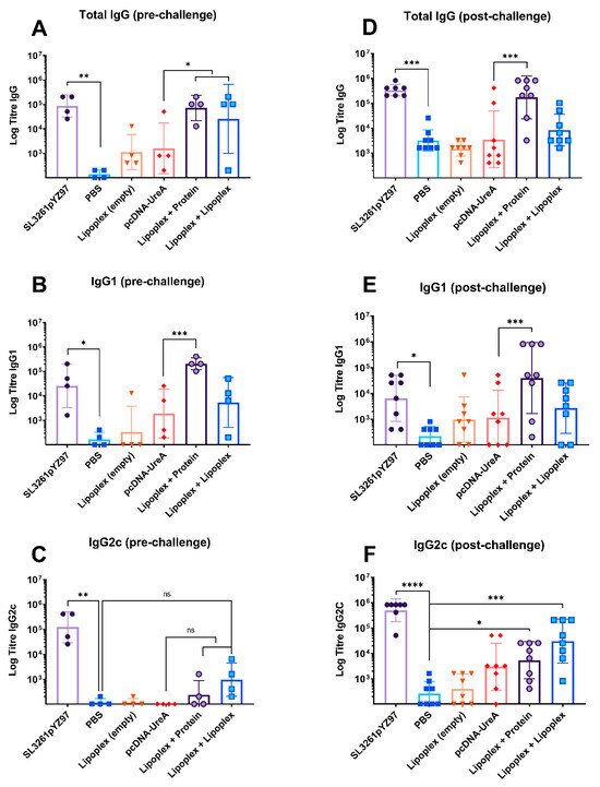 2.3.1. Pre-Challenge Antigen-Specific IgG, IgG1, and IgG2c Antibody Levels