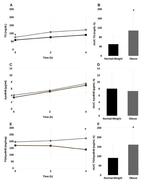 2.2. Serum Triglycerides and ApoB48 during the Postprandial Phase