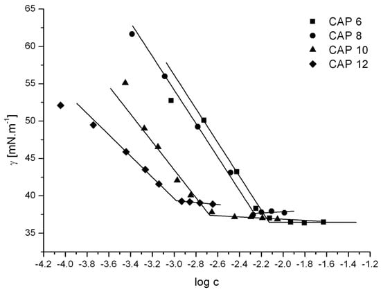 | Compound | cmc [mol·dm−3] | γcmc [mN·m−1] | Acmc [nm2] |
