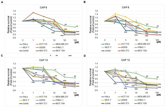 | HeLa | HCT116 | MDA-MB-231 | MCF-7 | A2058 | PANC-1 | Jurkat | NIH 3T3 | MCF-10A | |