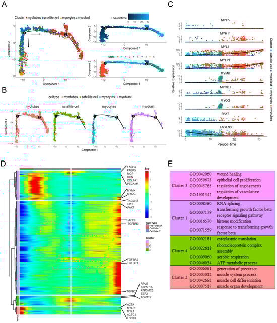 2.3. Pseudotime Patterns Reveal the Relationships among Different Myogenic Populations