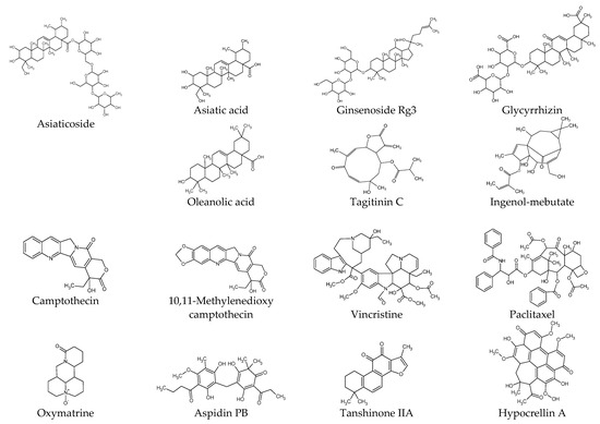 Camptothecin, originally isolated from Camptotheca acuminata, is a topoisomerase inhibitor that has been used in cancer therapy [133]. Camptothecin lowered the expression levels of collagen 1/3 in KFs without causing cellular toxicity [123]. Its effects on the collagen 3 level were relatively smaller, and consequently, the ratios of collagen 1 to collagen 3 were decreased by the camptothecin treatment [133].