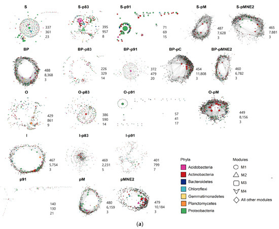 - Barberán, A.; Bates, S.T.; Casamayor, E.O.; Fierer, N. Using Network Analysis to Explore Co-Occurrence Patterns in Soil Microbial Communities. ISME J. 2012, 6, 343–351. [Google Scholar] [CrossRef] [PubMed]