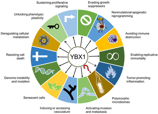 In the year 2020, cancer was responsible for 18% of total deaths, maintaining its position as the second most common cause of death following heart diseases. Pancreatic cancer is the third leading cause of cancer death and reigns supreme in regard of having the lowest 5-year relative survival rates among cancer types [1]. Understanding the mechanism driving tumor progression will be beneficial to cancer treatment. This review aims to offer a comprehensive understanding of Y-box binding protein 1 (YBX1)’s multifaceted role in cancer by summarizing its significant functions in relation to cancer hallmarks [2,3,4].