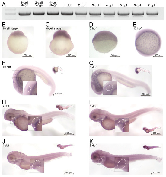 - Kimmel, C.B.; Ballard, W.W.; Kimmel, S.R.; Ullmann, B.; Schilling, T.F. Stages of embryonic development of the zebrafish. Dev. Dyn. 1995, 203, 253–310. [Google Scholar] [CrossRef] [PubMed]
