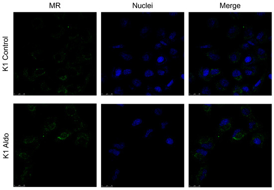 MR was also present in the cytoplasm of the K1 cell line at baseline, but, unlike the BCPAP cell line, nuclear translocation was not detected following treatment with Aldo (Figure 6).