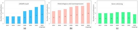 - Liao, J.; Liu, T.; Xie, L.; Mo, C.; Qiao, J.; Huang, X.; Cui, S.; Jia, X.; Luo, Z.; Ma, X. Heterologous Mogrosides Biosynthesis in Cucumber and Tomato by Genetic Manipulation. Commun. Biol. 2023, 6, 191. [Google Scholar] [CrossRef] [PubMed]