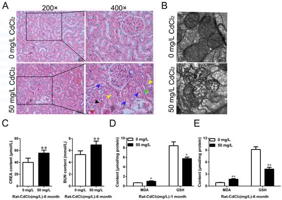 - Gobe, G.; Crane, D. Mitochondria, reactive oxygen species and cadmium toxicity in the kidney. Toxicol. Lett. 2010, 198, 49–55. [Google Scholar] [CrossRef] [PubMed]