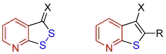 The structures of [1,2]dithiolo[3,4-b]pyridines and thieno[2,3-b]pyridines.