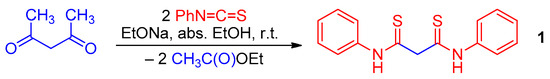 Recently, we have described the synthesis of functionalized [1,2]dithiolo[3,4-b]pyri- dines based on dithiomalondianilide 1 [30,31,32]. The starting thioamide 1 is readily available from the reaction of acetylacetone with phenyl isothiocyanate in the presence of sodium ethoxide (Scheme 2) [33,34].