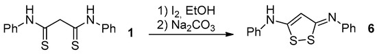 Scheme 5. Preparation of 1,2-dithiol 6 via oxidation of dithiomalondianilide 1.