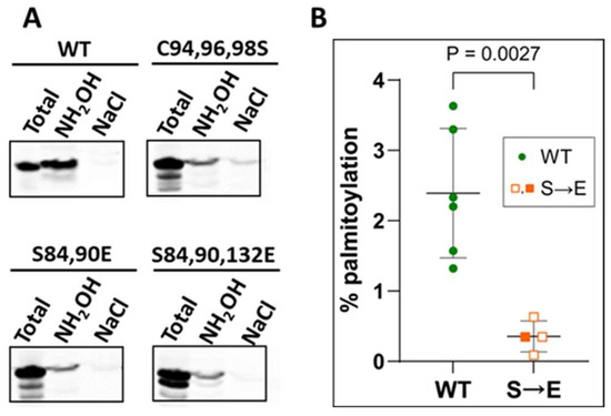 2.3. Effect of Phosphomimetic Mutations on Palmitoylation