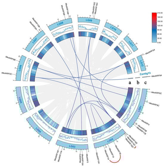 - Chen, F.; Zhang, J.; Ha, X.; Ma, H. Genome-wide identification and expression analysis of the Auxin-Response factor (ARF) gene family in Medicago sativa under abiotic stress. BMC Genom. 2023, 24, 498. [Google Scholar] [CrossRef] [PubMed]