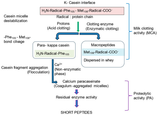 - Fox, P.F.; Guinee, T.P.; Cogan, T.M.; McSweeney, P.L.H. Enzymatic Coagulation of Milk. In Fundamentals of Cheese Science; Fox, P.F., Guinee, T.P., Cogan, T.M., McSweeney, P.L.H., Eds.; Springer: Boston, MA, USA, 2017; pp. 185–229. [Google Scholar]