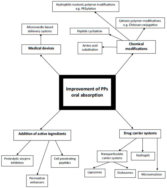 Chicago/Turabian StyleNicze, Michał, Maciej Borówka, Adrianna Dec, Aleksandra Niemiec, Łukasz Bułdak, and Bogusław Okopień. 2024. "The Current and Promising Oral Delivery Methods for Protein- and Peptide-Based Drugs" International Journal of Molecular Sciences 25, no. 2: 815. https://doi.org/10.3390/ijms25020815