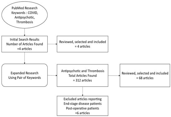 - Manoubi, S.A.; Boussaid, M.; Brahim, O.; Ouanes, S.; Mahjoub, Y.; Zarrouk, L.; Mesrati, M.A.; Aissaoui, A. Fatal pulmonary embolism in patients on antipsychotics: Case series, systematic review and meta-analysis. Asian J. Psychiatr. 2022, 73, 103105. [Google Scholar] [CrossRef]