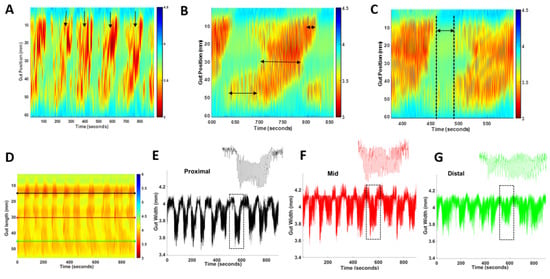 - Costa, M.; Hibberd, T.J.; Keightley, L.J.; Wiklendt, L.; Arkwright, J.W.; Dinning, P.G.; Brookes, S.J.H.; Spencer, N.J. Neural motor complexes propagate continuously along the full length of mouse small intestine and colon. Am. J. Physiol. Gastrointest. Liver Physiol. 2020, 318, G99–G108. [Google Scholar] [CrossRef]