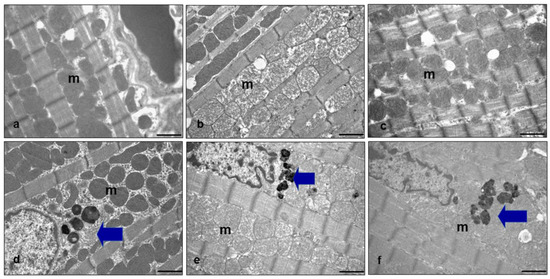 A small part of the heart of each experimental animal was fragmented in small pieces, fixed in 2.5% glutaraldehyde and cacodylate buffer 0.1 M for 3 h, and then post-fixed in 2% osmium tetroxide in the same buffer for 1 h at +4 °C. Then the samples were dehydrated in progressive ethanol concentrations and propylene oxide and embedded in an Epon 812 mixture, as previously described [49]. Thin sections (80 nm) were collected on copper grids, double stained in uranyl acetate and lead citrate, and observed under a transmission electron microscope (Philips CM12, FEI Company, Eindhoven, The Netherlands) set at 80 kV.