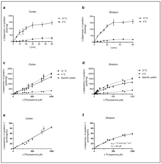 4.3.1. Dependence of [3H]-Dopamine Uptake on Temperature, Time, and Concentration