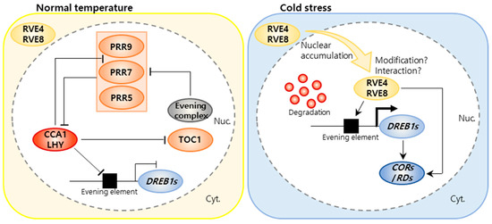 - Dong, M.A.; Farré, E.M.; Thomashow, M.F. Circadian clock-associated 1 and late elongated hypocotyl regulate expression of the C-repeat binding factor (CBF) pathway in Arabidopsis. Proc. Natl. Acad. Sci. USA 2011, 108, 7241–7246. [Google Scholar] [CrossRef] [PubMed]