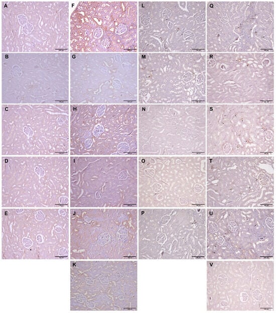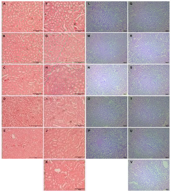 2.7. Kidney Tissue Histopathological Analysis