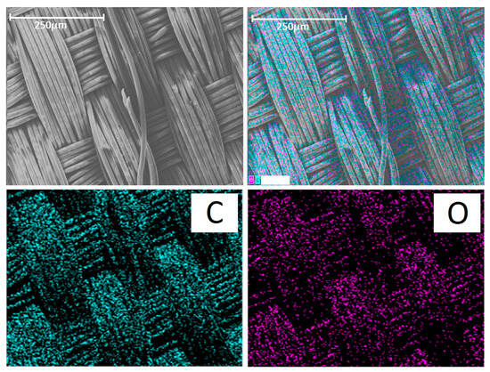Since the prosthesis itself was woven from polyester fiber, its main elements were C and O. Mapping of these elements revealed the pattern of the prosthesis (Figure 7, bottom row). Therefore, these elements cannot be used for imaging cells.