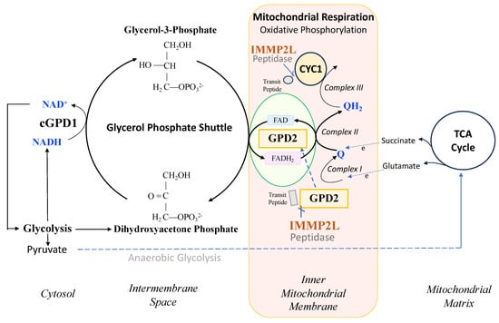 Figure 1). CYC1 is an integral component of the mitochondrial respiratory (electron transport) chain (ETC), and GPD2 forms an integral component of the glycerol phosphate shuttle (GPS) that transfers electrons from the NADH generated in glycolysis to the mitochondrial ETC to mediate mitochondrial respiration, generate ATP and regenerate NAD