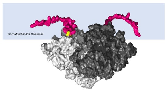 Immp2lKD−/− KO mouse had altered molecular connections between the Cyc1 and Cyb respiratory subunits of Complex III. In this analysis, Alpha-Fold2-Multimer predicted 56 ‘new’ molecular interactions between the ‘uncleaved’ signal transit peptide of Cyc1 and Cyb in mice (