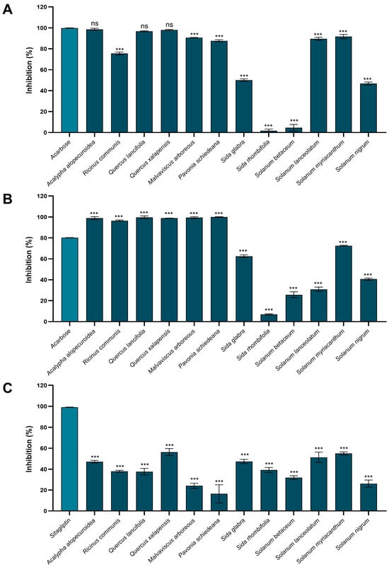 - Arciniegas, A.; Pérez-Castorena, A.L.; Nieto-Camacho, A.; Kita, Y.; De Vivar, A.R. Anti-Hyperglycemic, Antioxidant, and Anti-Inflammatory Activities of Extracts and Metabolites from Sida acuta and Sida rhombifolia. Quim. Nova 2017, 40, 176–181. [Google Scholar] [CrossRef]