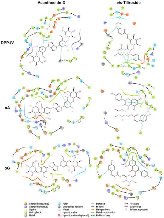 | Acanthoside D | −9.2 ± 0.33 | Arg 194, Trp 58 | Trp 58 |
